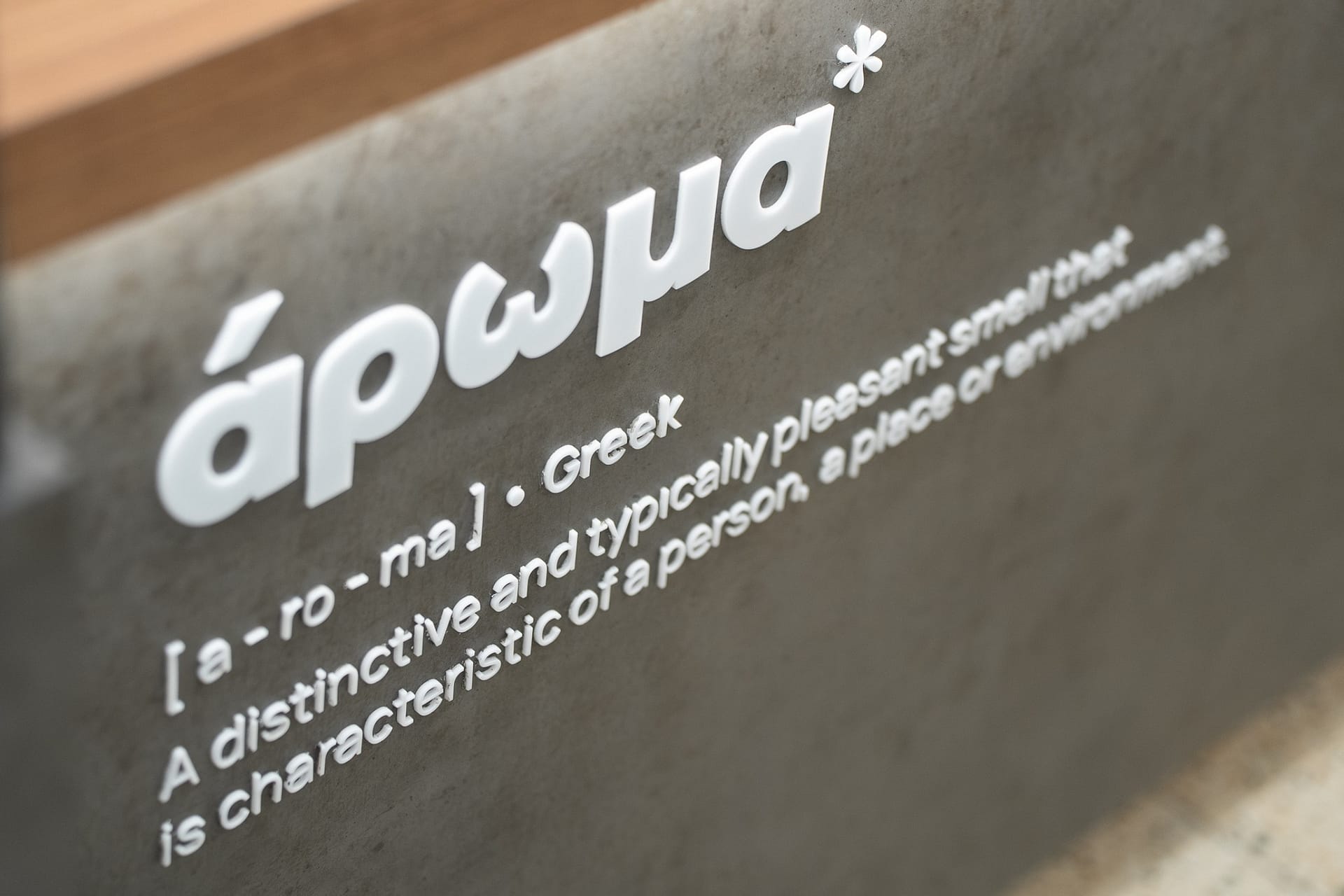 Η σχεδιαστική προσέγγιση για το “άρωμα*” βασίστηκε στην επιθυμία να δημιουργηθεί ένας χώρος που συνδυάζει την αισθητική καθαρότητα του μοντέρνου design με τη ζεστασιά της καθημερινής απόλαυσης. Το όνομα του καταστήματος, που παραπέμπει άμεσα σε αισθήσεις και αναμνήσεις, αποτέλεσε και τη βασική αφηγηματική αφετηρία της αρχιτεκτονικής σύνθεσης.