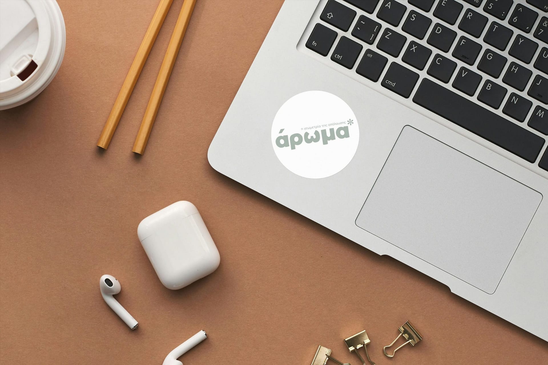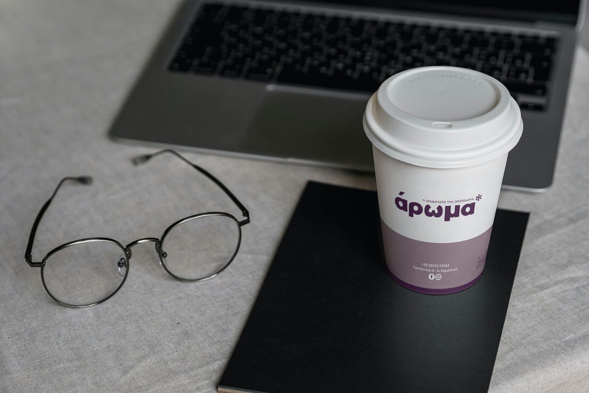 Σχεδιάσαμε την ταυτότητα για ένα νέο καφέ–ζαχαροπλαστείο στην Κομοτηνή, με ιδιαίτερη έμφαση στην απλότητα, την ακρίβεια και τη διακριτική φινέτσα. Το όνομα «άρωμα*» προέκυψε ως φυσική συνέχεια του ίδιου του προϊόντος: Εκείνου του πρώτου ατμού από τον καφέ, τις ευωδιές που απελευθερώνει ένα φρεσκοψημένο γλυκό, ή της ανάμνησης που ξυπνά η αίσθηση της όσφρησης εν γένει. Ο μικρός αστερίσκος στο τέλος του ονόματος λειτουργεί σαν υπαινιγμός — μια υποσημείωση ανοιχτή, που αφήνει χώρο στον καθένα να συμπληρώσει τη δική του εκδοχή της απόλαυσης.