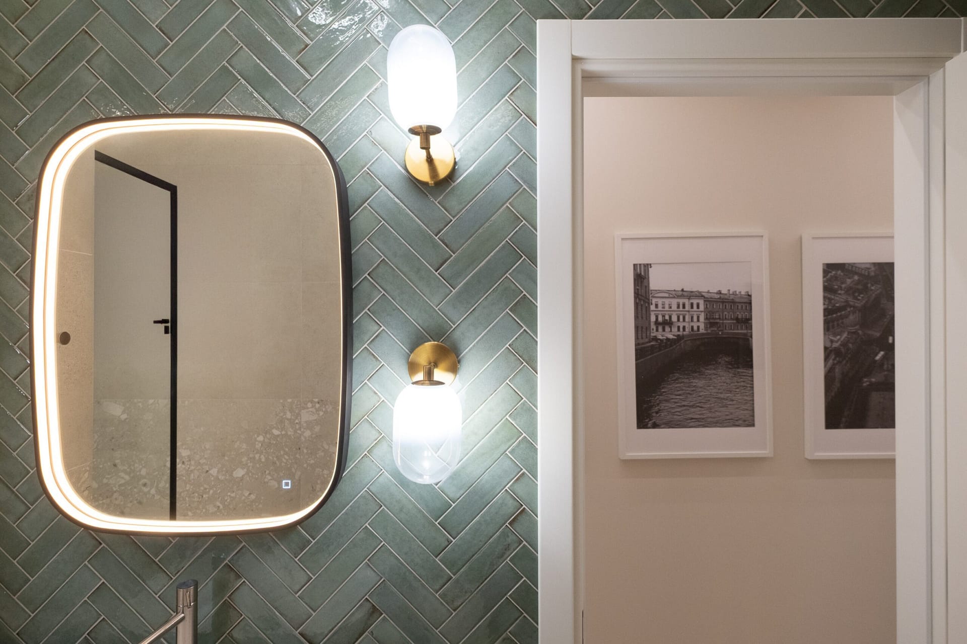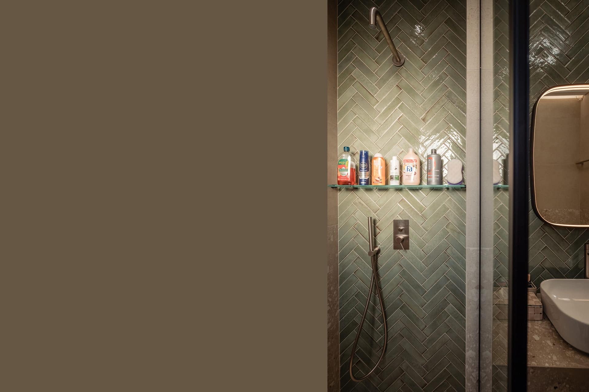 Το μπάνιο ντύθηκε σε παστέλ αποχρώσεις του σιέλ, με στόχο να αποπνέει φρεσκάδα, καθαρότητα και χαλάρωση. Οι απαλές αντιθέσεις και η καθαρή γραμμικότητα συμβάλλουν σε έναν χώρο ήρεμο και ευχάριστο στην καθημερινή χρήση.